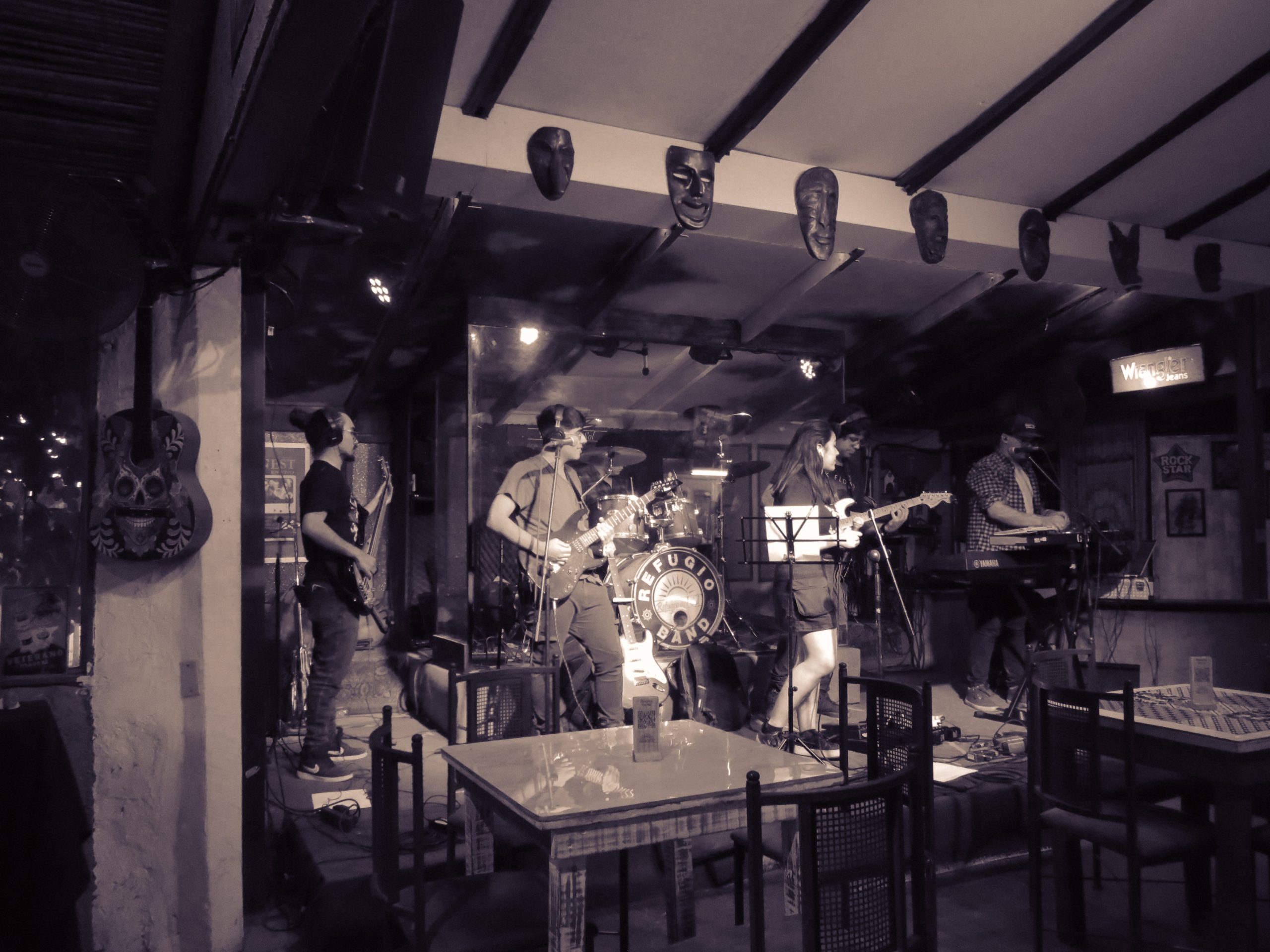 2 amplificadores de guitarra, 1 amplificador de bajo, Batería, mesa de sonido, 2 micrófonos, enchufes para conectar pedaleras de guitarras o bajo, retorno de sonido.